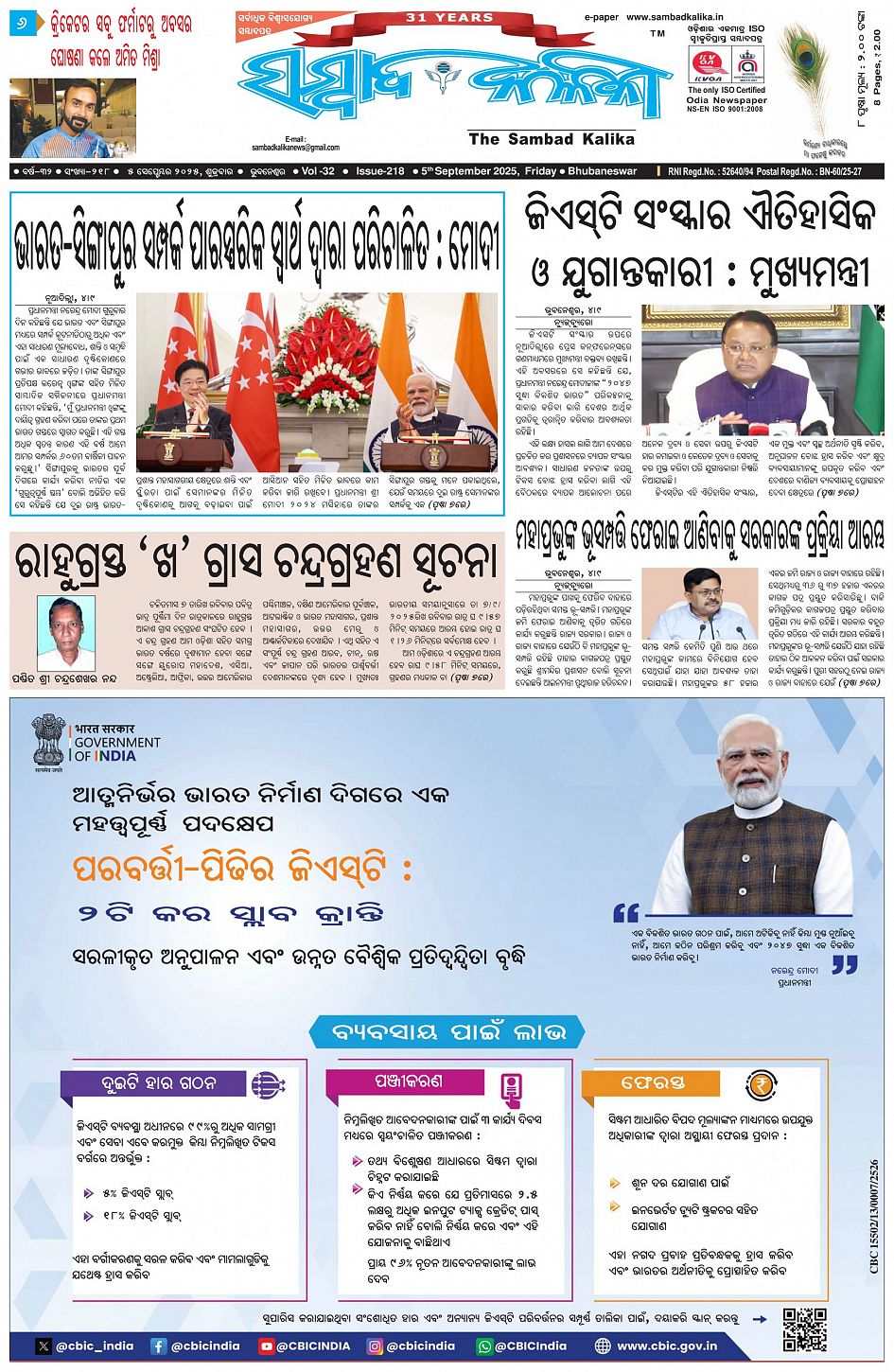 The Sambad Kalika Odia Daily Newspaper September 05, 2025 The Sambad Kalika Odia Daily Newspaper << First << 1 2 3 4 >> Last >> Page 1Page 2Page 3Page 4Page 5Page 6Page 7Page 8 × The Sambad Kalika Odia Daily Newspaper Page-1Page-2Page-3Page-4Page-5Page-6Page-7Page-8 Full PDF << First << 1 2 3 4 >> Last >> Page-1Page-2Page-3Page-4Page-5Page-6Page-7Page-8 Page-1