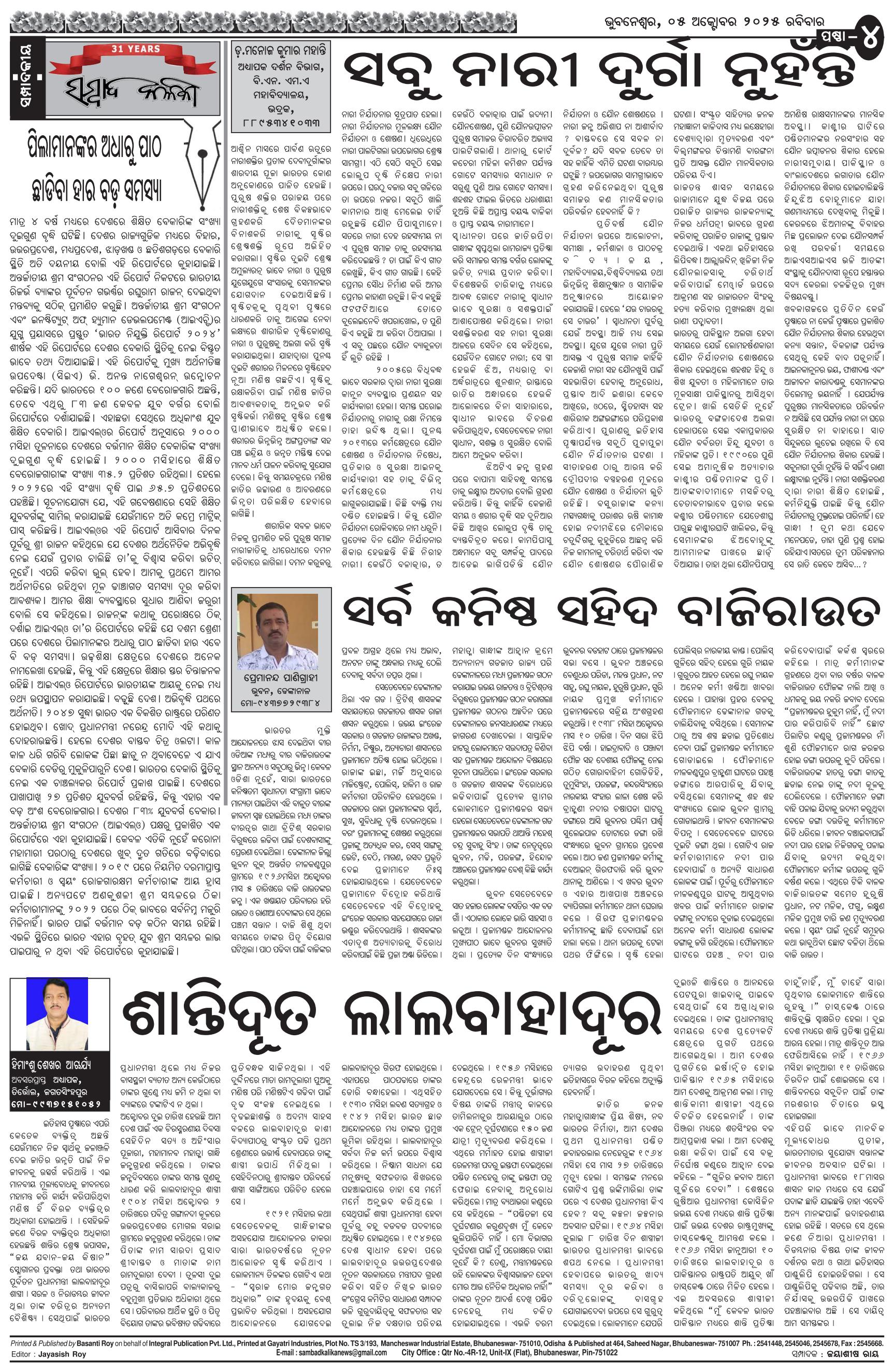 The Sambad Kalika Odia Daily Newspaper Page: 4 October 05, 2025 The Sambad Kalika Odia Daily Newspaper << First << 2 3 4 5 >> Last >> Page 1Page 2Page 3Page 4Page 5Page 6Page 7Page 8 × The Sambad Kalika Odia Daily Newspaper Page-1Page-2Page-3Page-4Page-5Page-6Page-7Page-8 Full PDF << First << 2 3 4 5 >> Last >> Page-1Page-2Page-3Page-4Page-5Page-6Page-7Page-8 Page-4