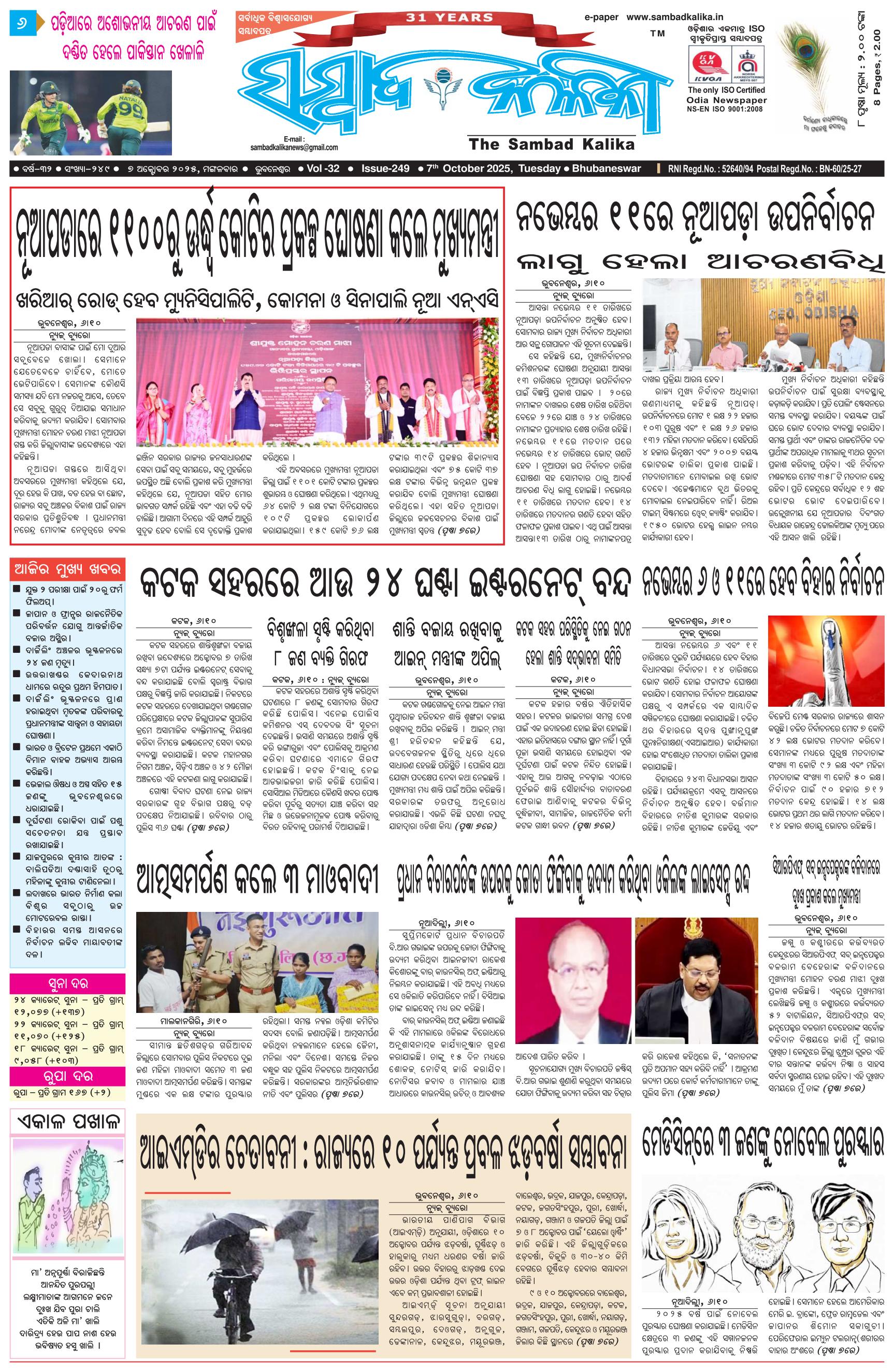 The Sambad Kalika Odia Daily Newspaper October 07, 2025 The Sambad Kalika Odia Daily Newspaper << First << 1 2 3 4 >> Last >> Page 1Page 2Page 3Page 4Page 5Page 6Page 7Page 8 × The Sambad Kalika Odia Daily Newspaper Page-1Page-2Page-3Page-4Page-5Page-6Page-7Page-8 Full PDF << First << 1 2 3 4 >> Last >> Page-1Page-2Page-3Page-4Page-5Page-6Page-7Page-8 Page-1
