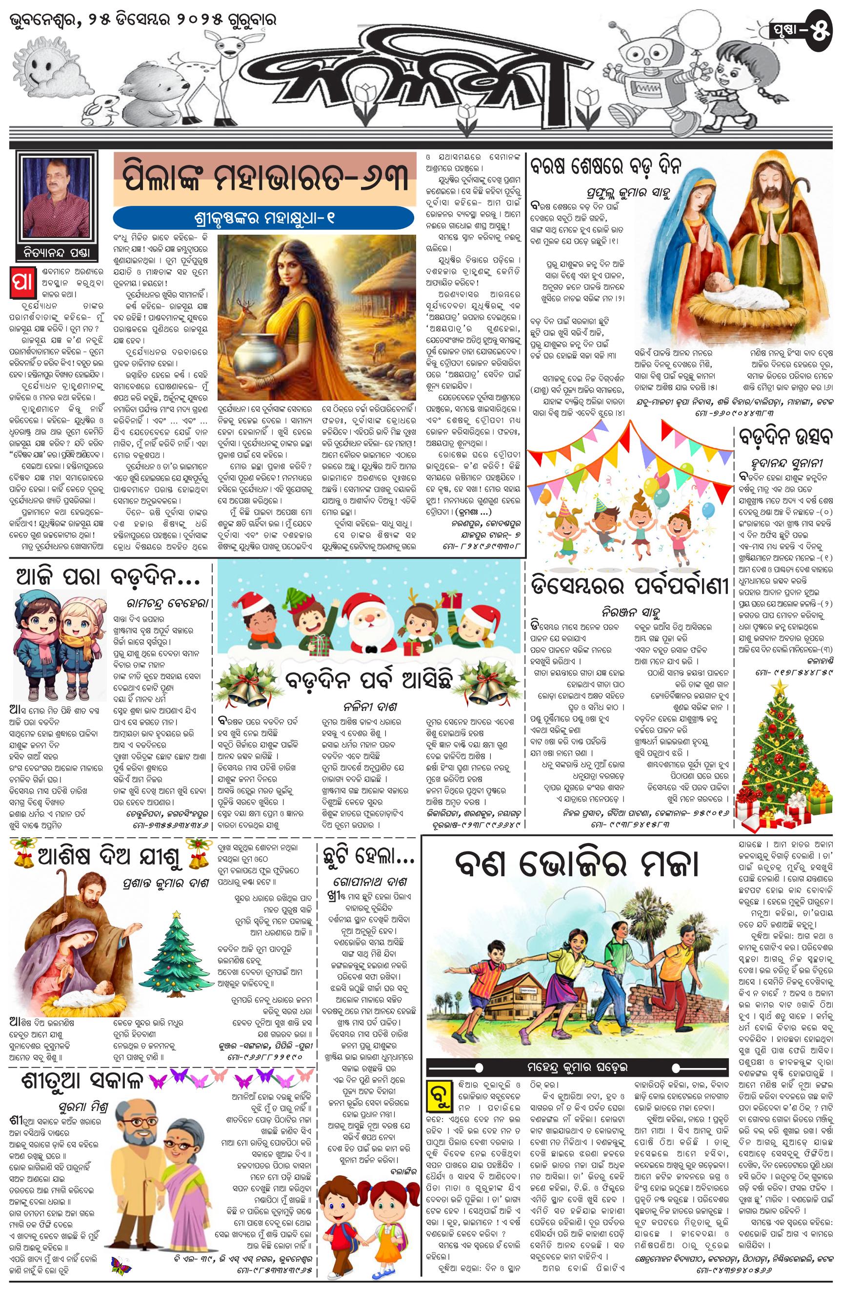 The Sambad Kalika Odia Daily Newspaper Page: 5 December 25, 2025 The Sambad Kalika Odia Daily Newspaper << First << 3 4 5 6 >> Last >> Page 1Page 2Page 3Page 4Page 5Page 6Page 7Page 8 × The Sambad Kalika Odia Daily Newspaper Page-1Page-2Page-3Page-4Page-5Page-6Page-7Page-8 Full PDF << First << 3 4 5 6 >> Last >> Page-1Page-2Page-3Page-4Page-5Page-6Page-7Page-8 Page-5