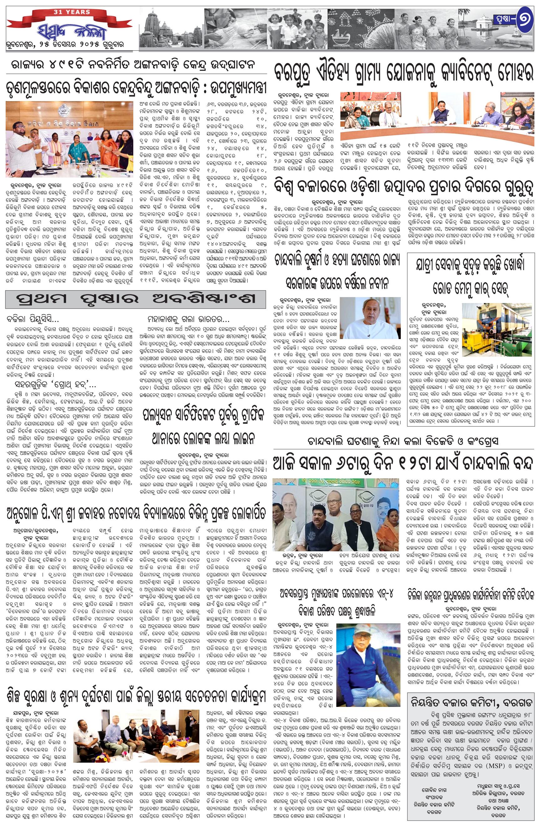 The Sambad Kalika Odia Daily Newspaper Page: 7 December 25, 2025 The Sambad Kalika Odia Daily Newspaper << First << 5 6 7 8 >> Last >> Page 1Page 2Page 3Page 4Page 5Page 6Page 7Page 8 × The Sambad Kalika Odia Daily Newspaper Page-1Page-2Page-3Page-4Page-5Page-6Page-7Page-8 Full PDF << First << 5 6 7 8 >> Last >> Page-1Page-2Page-3Page-4Page-5Page-6Page-7Page-8 Page-7