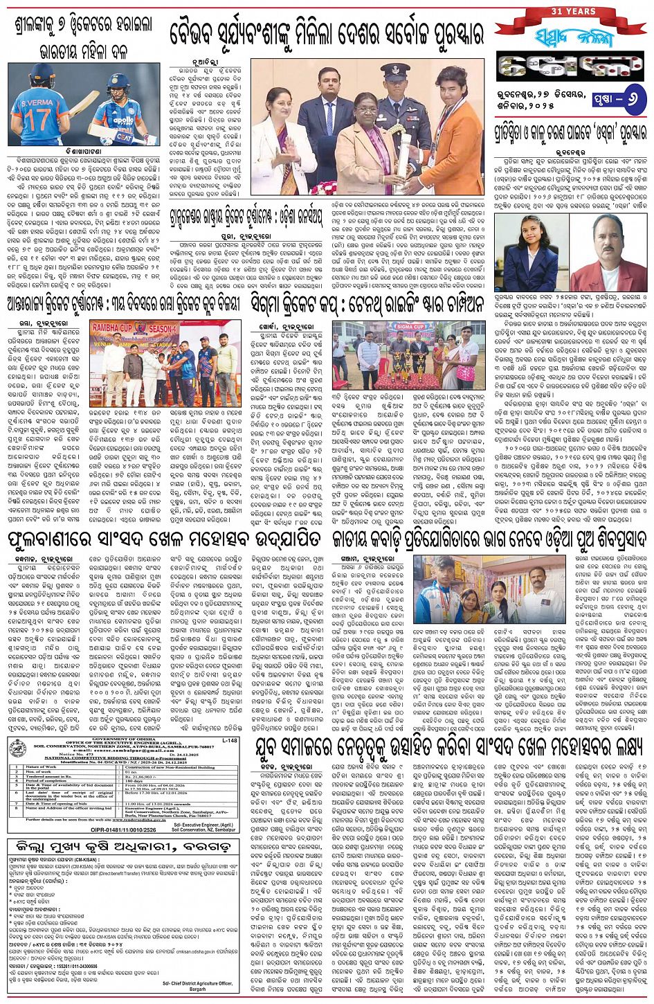 The Sambad Kalika Odia Daily Newspaper Page: 6 December 27, 2025 The Sambad Kalika Odia Daily Newspaper << First << 4 5 6 7 >> Last >> Page 1Page 2Page 3Page 4Page 5Page 6Page 7Page 8 × The Sambad Kalika Odia Daily Newspaper Page-1Page-2Page-3Page-4Page-5Page-6Page-7Page-8 Full PDF << First << 4 5 6 7 >> Last >> Page-1Page-2Page-3Page-4Page-5Page-6Page-7Page-8 Page-6