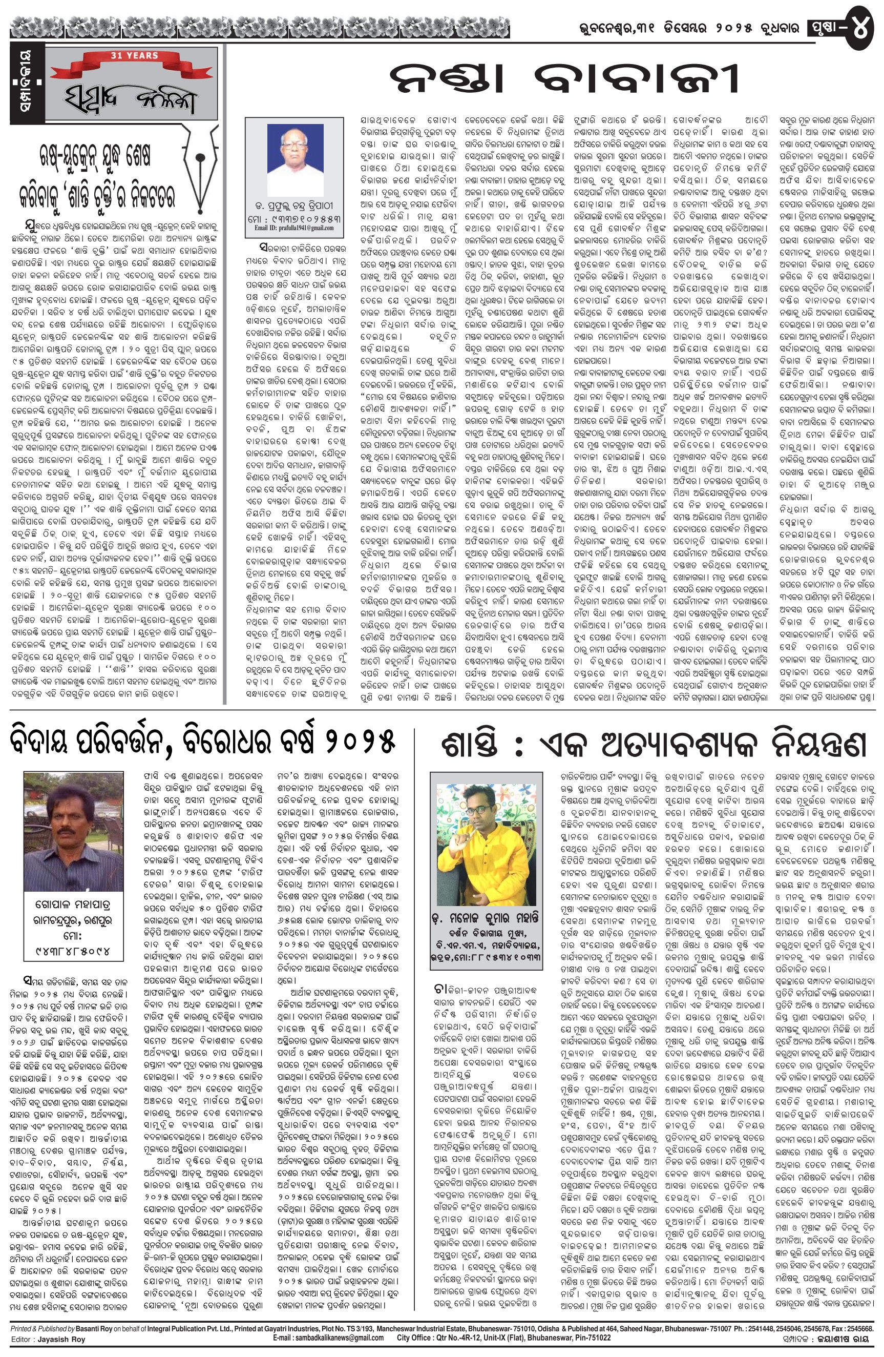 The Sambad Kalika Odia Daily Newspaper Page: 4 December 31, 2025 The Sambad Kalika Odia Daily Newspaper << First << 2 3 4 5 >> Last >> Page 1Page 2Page 3Page 4Page 5Page 6Page 7Page 8 × The Sambad Kalika Odia Daily Newspaper Page-1Page-2Page-3Page-4Page-5Page-6Page-7Page-8 Full PDF << First << 2 3 4 5 >> Last >> Page-1Page-2Page-3Page-4Page-5Page-6Page-7Page-8 Page-4