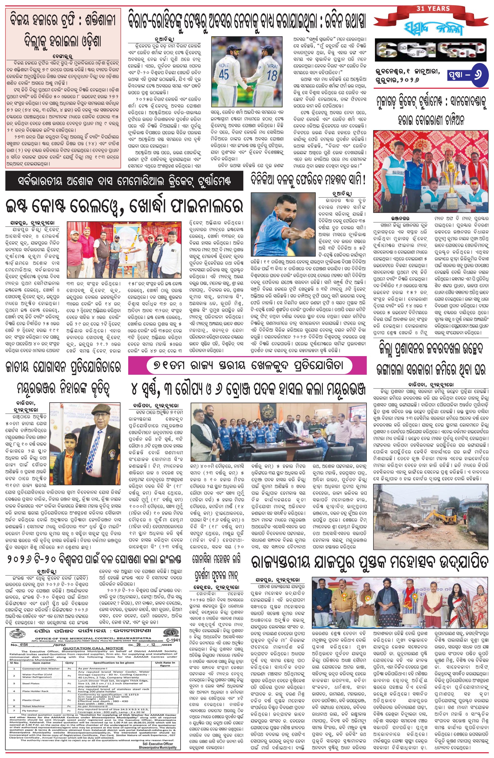 The Sambad Kalika Odia Daily Newspaper Page: 6 January 01, 2026 The Sambad Kalika Odia Daily Newspaper << First << 4 5 6 7 >> Last >> Page 1Page 2Page 3Page 4Page 5Page 6Page 7Page 8 × The Sambad Kalika Odia Daily Newspaper Page-1Page-2Page-3Page-4Page-5Page-6Page-7Page-8 Full PDF << First << 4 5 6 7 >> Last >> Page-1Page-2Page-3Page-4Page-5Page-6Page-7Page-8 Page-6
