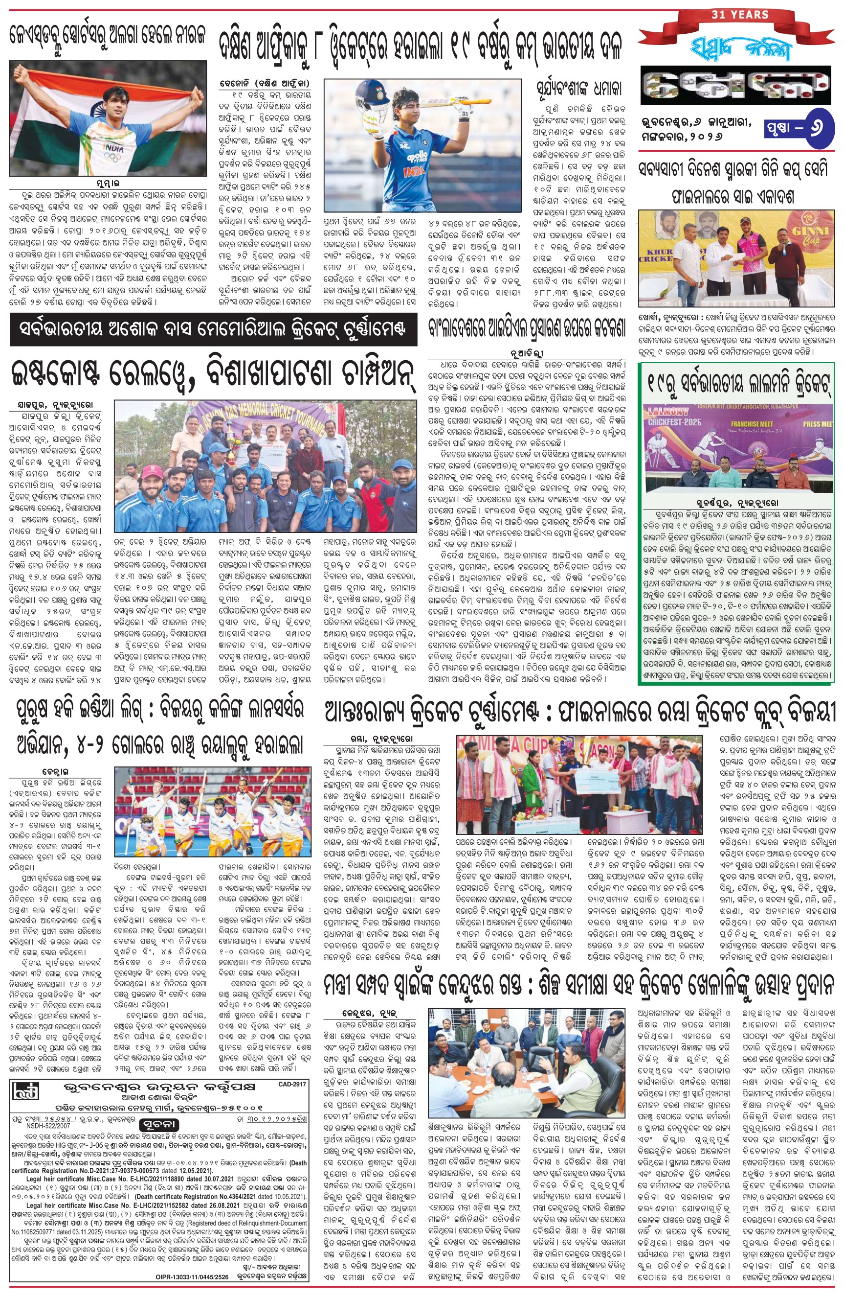 The Sambad Kalika Odia Daily Newspaper Page: 6 January 06, 2026 The Sambad Kalika Odia Daily Newspaper << First << 4 5 6 7 >> Last >> Page 1Page 2Page 3Page 4Page 5Page 6Page 7Page 8 × The Sambad Kalika Odia Daily Newspaper Page-1Page-2Page-3Page-4Page-5Page-6Page-7Page-8 Full PDF << First << 4 5 6 7 >> Last >> Page-1Page-2Page-3Page-4Page-5Page-6Page-7Page-8 Page-6