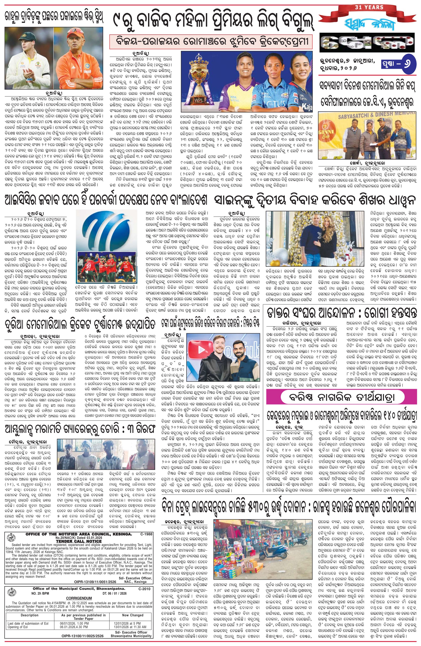 The Sambad Kalika Odia Daily Newspaper Page: 6 January 07, 2026 The Sambad Kalika Odia Daily Newspaper << First << 4 5 6 7 >> Last >> Page 1Page 2Page 3Page 4Page 5Page 6Page 7Page 8 × The Sambad Kalika Odia Daily Newspaper Page-1Page-2Page-3Page-4Page-5Page-6Page-7Page-8 Full PDF << First << 4 5 6 7 >> Last >> Page-1Page-2Page-3Page-4Page-5Page-6Page-7Page-8 Page-6