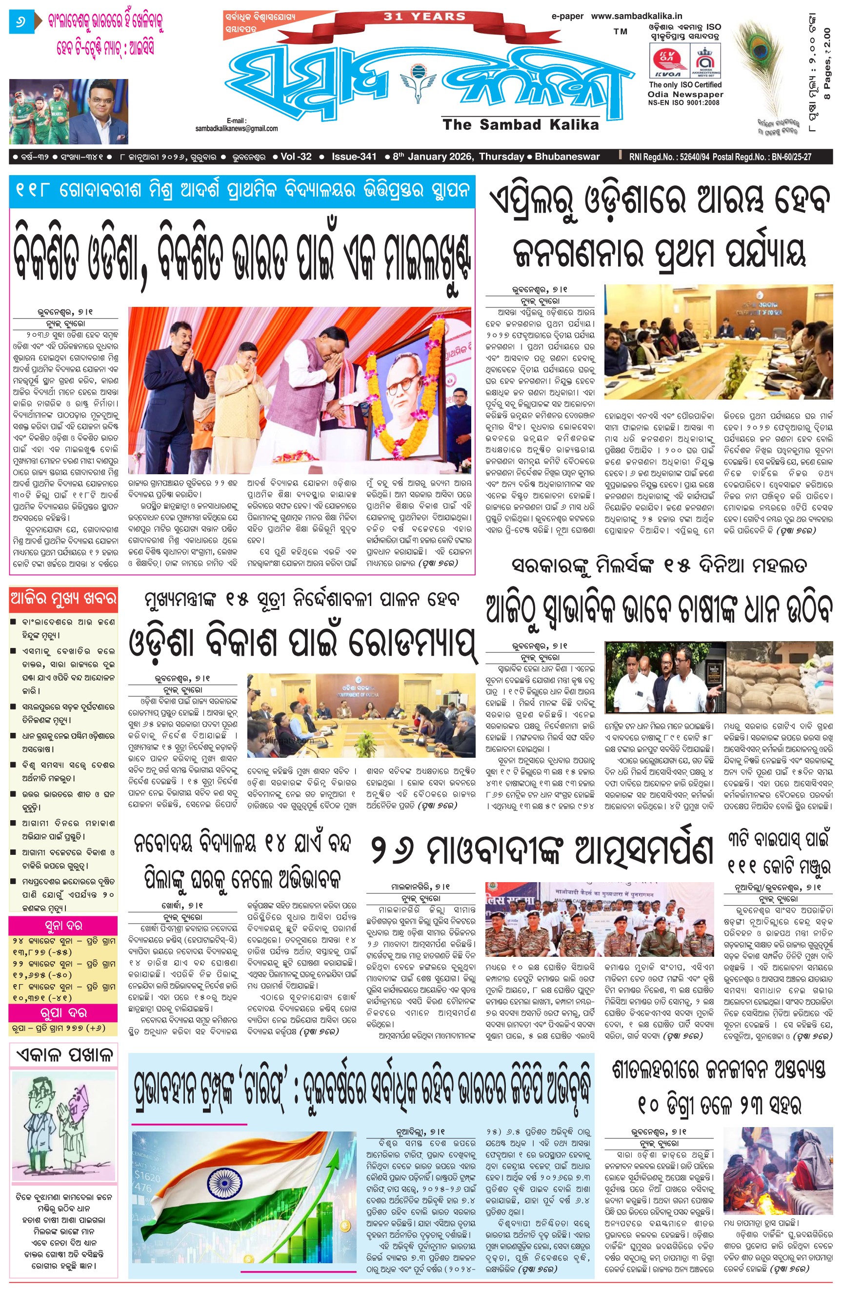 The Sambad Kalika Odia Daily Newspaper January 08, 2026 The Sambad Kalika Odia Daily Newspaper << First << 1 2 3 4 >> Last >> Page 1Page 2Page 3Page 4Page 5Page 6Page 7Page 8 × The Sambad Kalika Odia Daily Newspaper Page-1Page-2Page-3Page-4Page-5Page-6Page-7Page-8 Full PDF << First << 1 2 3 4 >> Last >> Page-1Page-2Page-3Page-4Page-5Page-6Page-7Page-8 Page-1