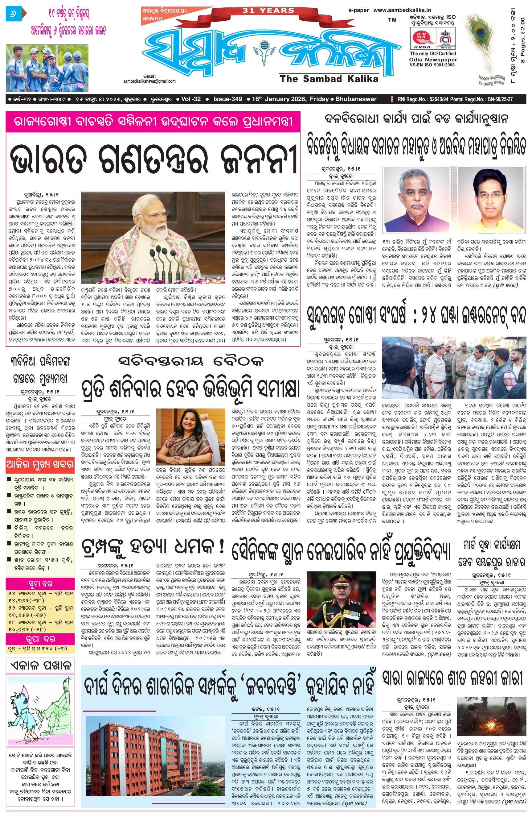 The Sambad Kalika Odia Daily Newspaper January 16, 2026 The Sambad Kalika Odia Daily Newspaper << First << 1 2 3 4 >> Last >> Page 1Page 2Page 3Page 4Page 5Page 6Page 7Page 8 × The Sambad Kalika Odia Daily Newspaper Page-1Page-2Page-3Page-4Page-5Page-6Page-7Page-8 Full PDF << First << 1 2 3 4 >> Last >> Page-1Page-2Page-3Page-4Page-5Page-6Page-7Page-8 Page-1