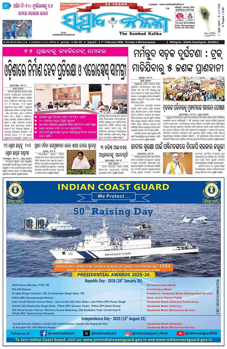 The Sambad Kalika Odia Daily Newspaper February 01, 2026 The Sambad Kalika Odia Daily Newspaper << First << 1 2 3 4 >> Last >> Page 1Page 2Page 3Page 4Page 5Page 6Page 7Page 8 × The Sambad Kalika Odia Daily Newspaper Page-1Page-2Page-3Page-4Page-5Page-6Page-7Page-8 Full PDF << First << 1 2 3 4 >> Last >> Page-1Page-2Page-3Page-4Page-5Page-6Page-7Page-8 Page-1