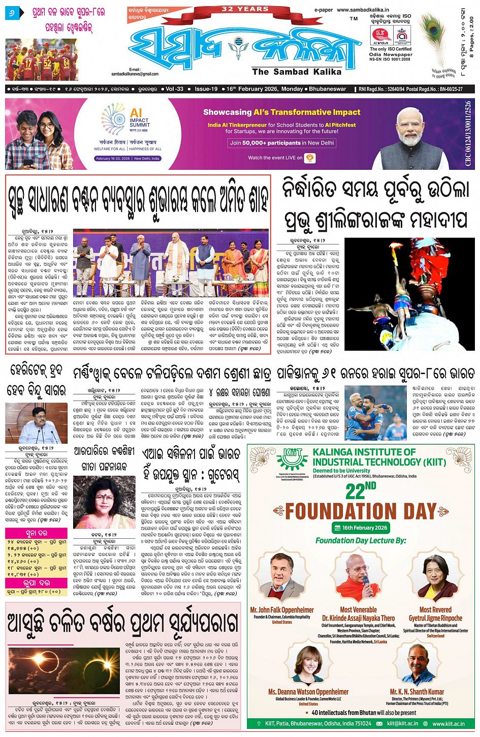 The Sambad Kalika Odia Daily Newspaper