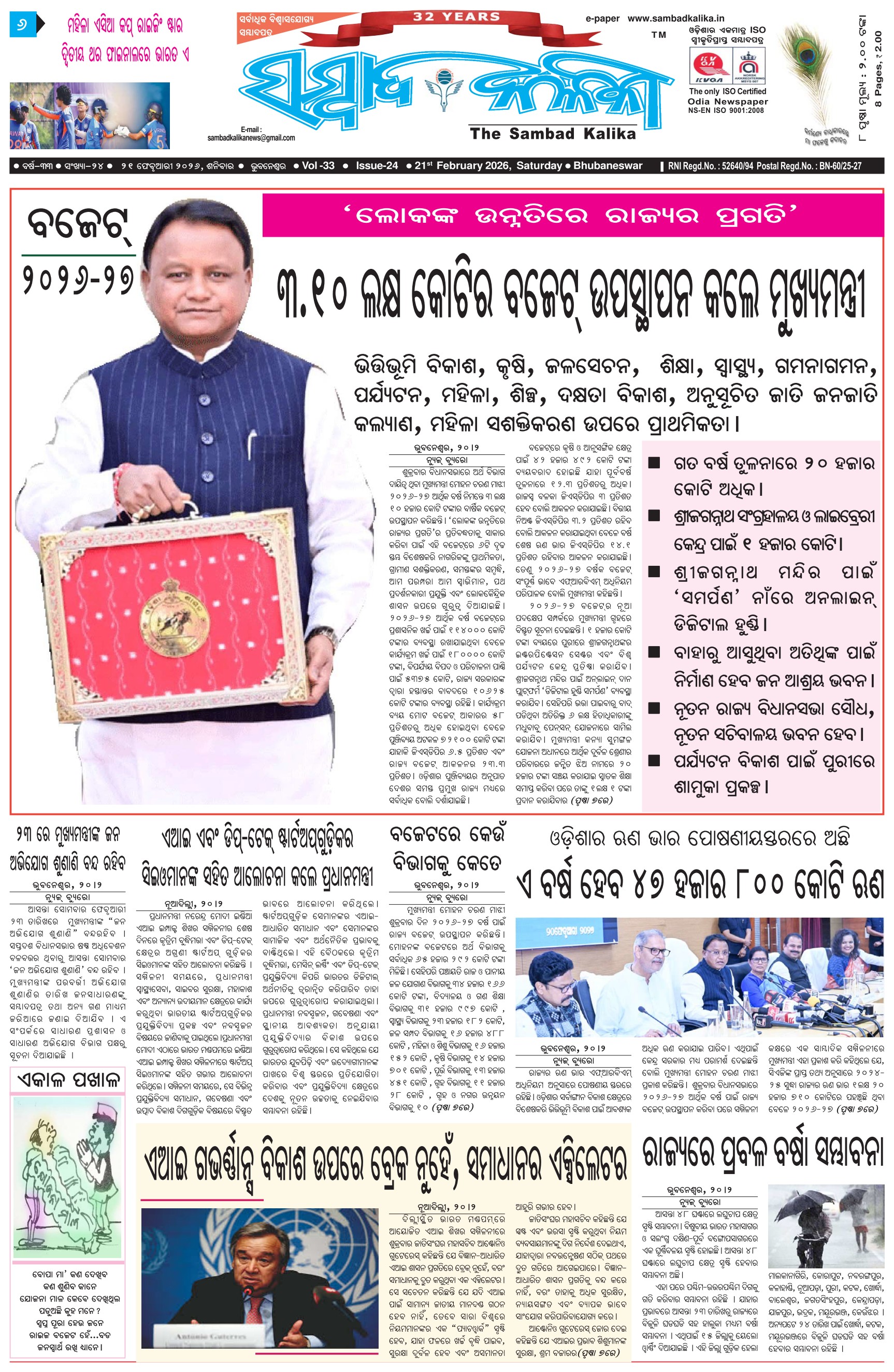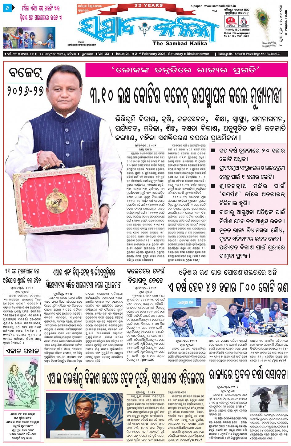 The Sambad Kalika Odia Daily Newspaper February 21, 2026 The Sambad Kalika Odia Daily Newspaper << First << 1 2 3 4 >> Last >> Page 1Page 2Page 3Page 4Page 5Page 6Page 7Page 8 × The Sambad Kalika Odia Daily Newspaper Page-1Page-2Page-3Page-4Page-5Page-6Page-7Page-8 Full PDF << First << 1 2 3 4 >> Last >> Page-1Page-2Page-3Page-4Page-5Page-6Page-7Page-8 Page-1