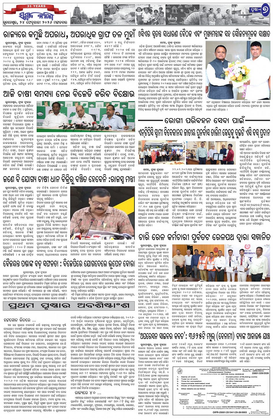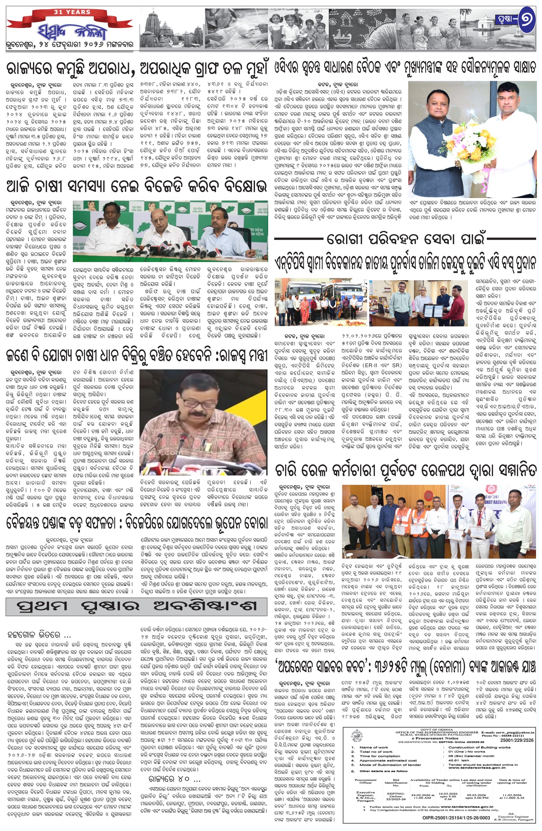 The Sambad Kalika Odia Daily Newspaper Page: 7 February 24, 2026 The Sambad Kalika Odia Daily Newspaper << First << 5 6 7 8 >> Last >> Page 1Page 2Page 3Page 4Page 5Page 6Page 7Page 8 × The Sambad Kalika Odia Daily Newspaper Page-1Page-2Page-3Page-4Page-5Page-6Page-7Page-8 Full PDF << First << 5 6 7 8 >> Last >> Page-1Page-2Page-3Page-4Page-5Page-6Page-7Page-8 Page-7
