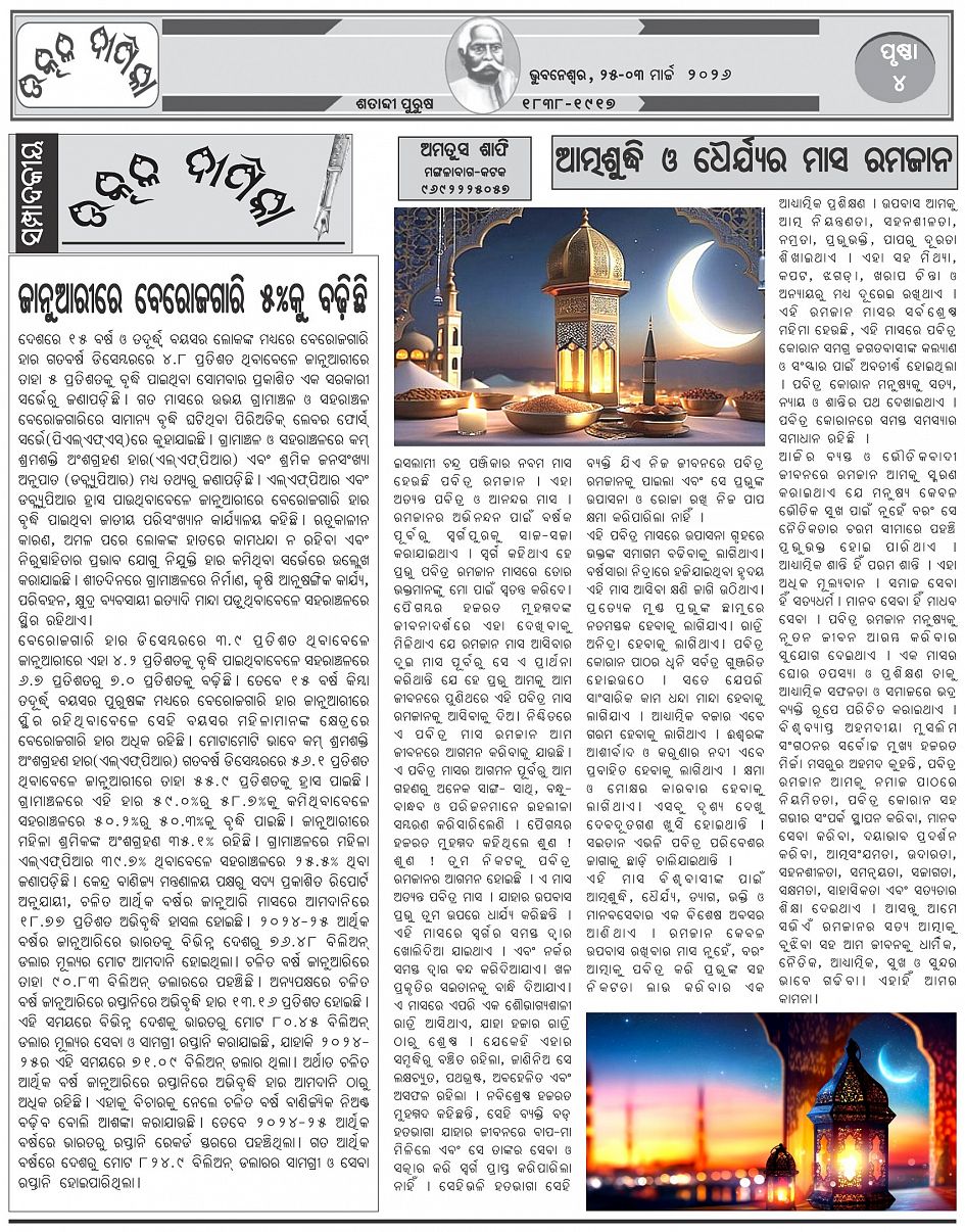 Utkal Deepika Weekly odia newspaper Page: 4 February 25, 2026 Utkal Deepika Weekly odia newspaper << First << 2 3 4 5 >> Last >> Page 1Page 2Page 3Page 4Page 5Page 6Page 7Page 8 × Utkal Deepika Weekly odia newspaper Page-1Page-2Page-3Page-4Page-5Page-6Page-7Page-8 << First << 2 3 4 5 >> Last >> Page-1Page-2Page-3Page-4Page-5Page-6Page-7Page-8 Page-4