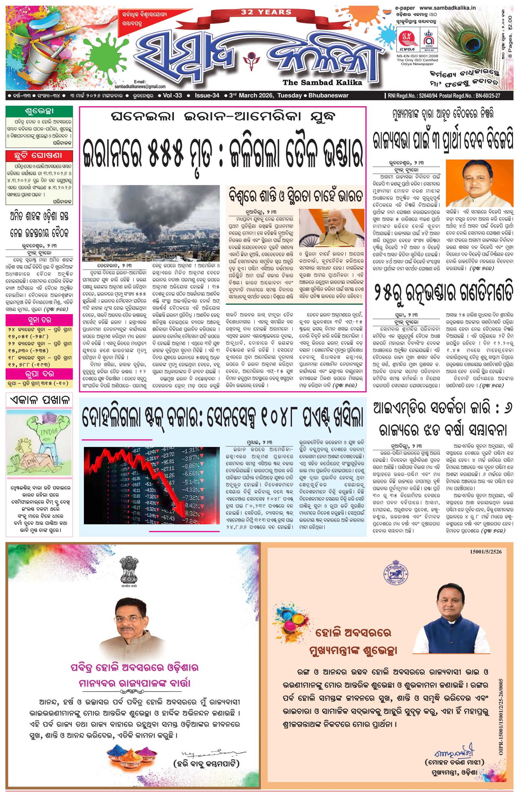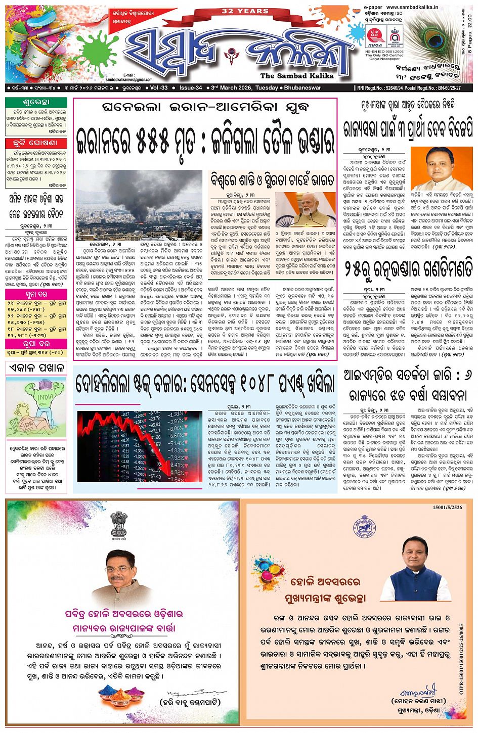 The Sambad Kalika Odia Daily Newspaper March 03, 2026 The Sambad Kalika Odia Daily Newspaper << First << 1 2 3 4 >> Last >> Page 1Page 2Page 3Page 4Page 5Page 6Page 7Page 8 × The Sambad Kalika Odia Daily Newspaper Page-1Page-2Page-3Page-4Page-5Page-6Page-7Page-8 Full PDF << First << 1 2 3 4 >> Last >> Page-1Page-2Page-3Page-4Page-5Page-6Page-7Page-8 Page-1