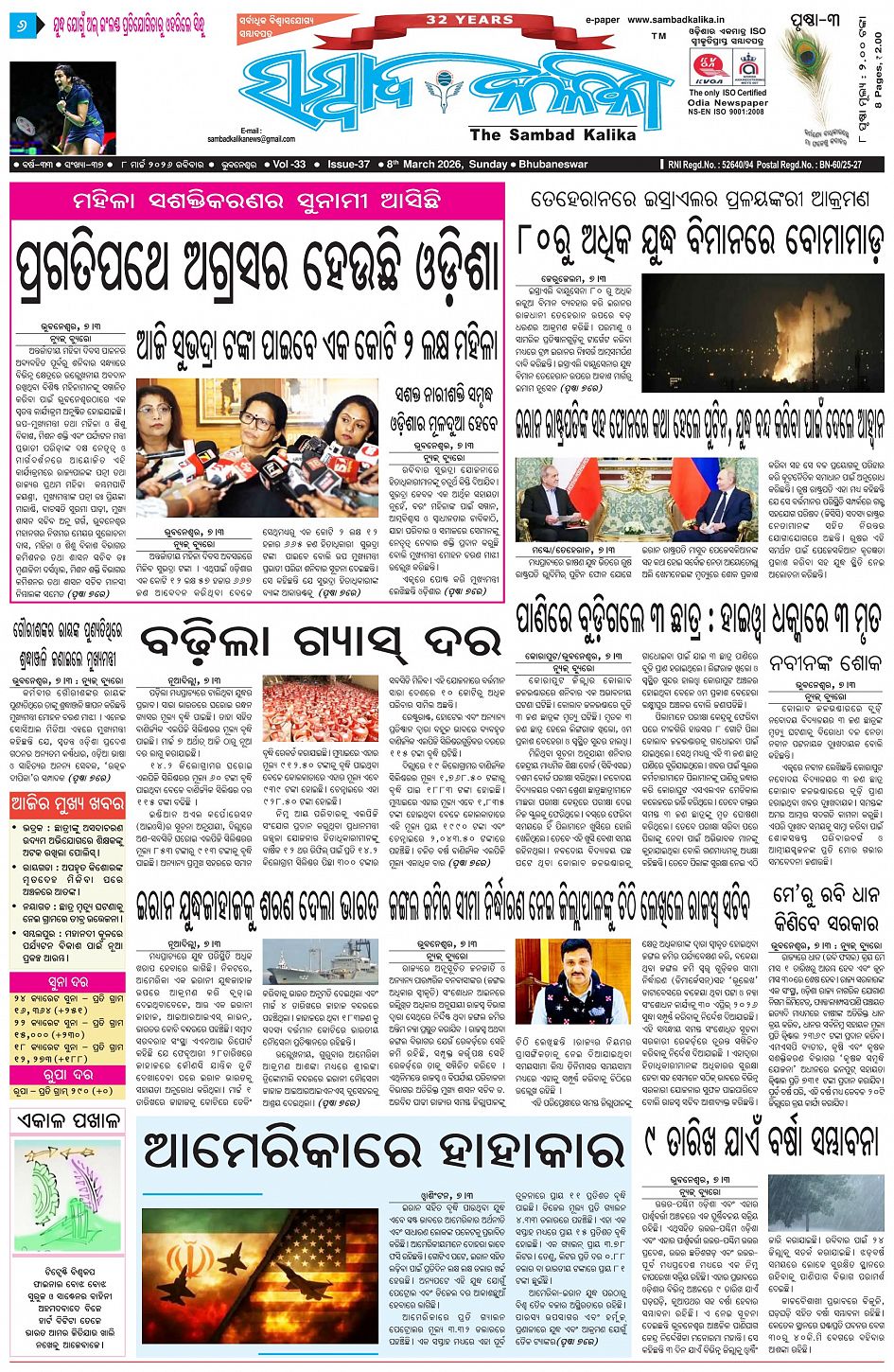 The Sambad Kalika Odia Daily Newspaper Page: 3 March 08, 2026 The Sambad Kalika Odia Daily Newspaper << First << 1 2 3 4 >> Last >> Page 1Page 2Page 3Page 4Page 5Page 6Page 7Page 8 × The Sambad Kalika Odia Daily Newspaper Page-1Page-2Page-3Page-4Page-5Page-6Page-7Page-8 Full PDF << First << 1 2 3 4 >> Last >> Page-1Page-2Page-3Page-4Page-5Page-6Page-7Page-8 Page-3