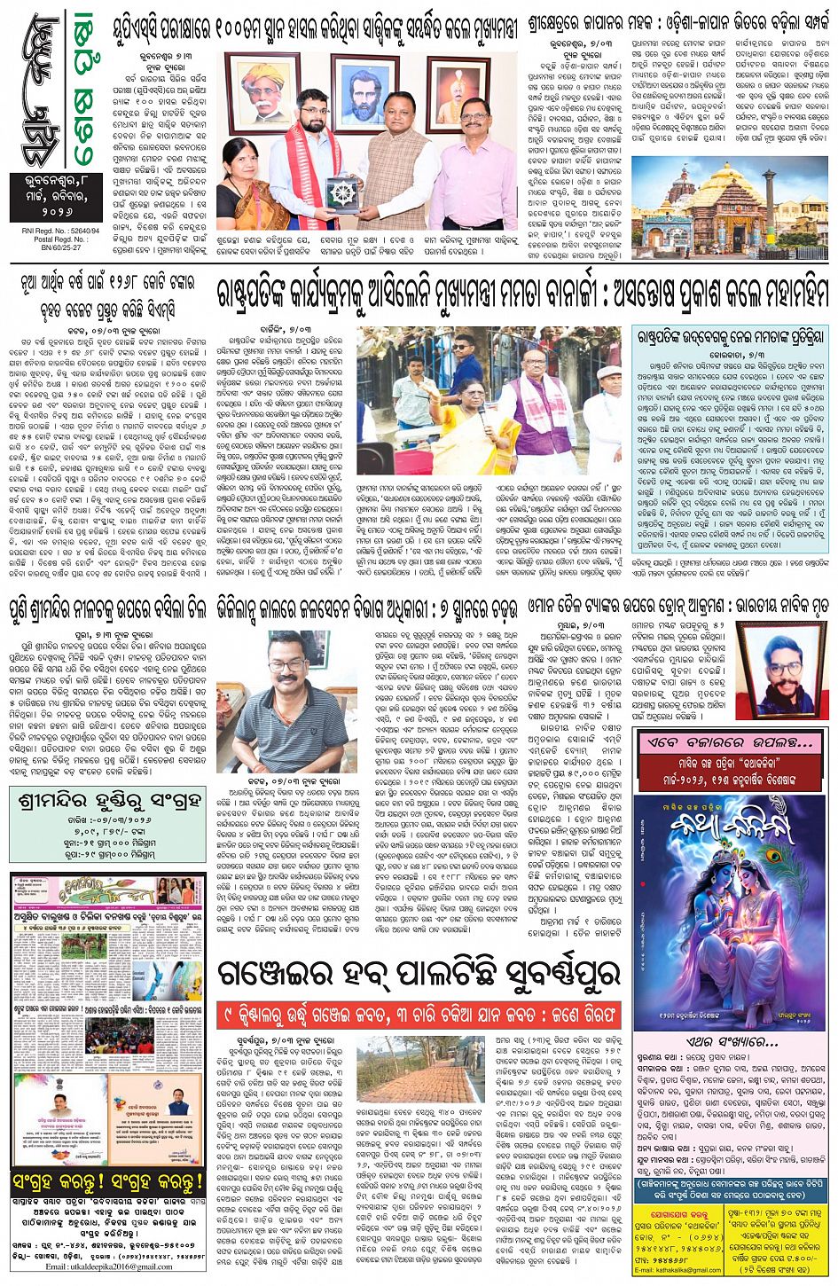 The Sambad Kalika Odia Daily Newspaper Page: 8 March 08, 2026 The Sambad Kalika Odia Daily Newspaper << First << 5 6 7 8 >> Last >> Page 1Page 2Page 3Page 4Page 5Page 6Page 7Page 8 × The Sambad Kalika Odia Daily Newspaper Page-1Page-2Page-3Page-4Page-5Page-6Page-7Page-8 Full PDF << First << 5 6 7 8 >> Last >> Page-1Page-2Page-3Page-4Page-5Page-6Page-7Page-8 Page-8