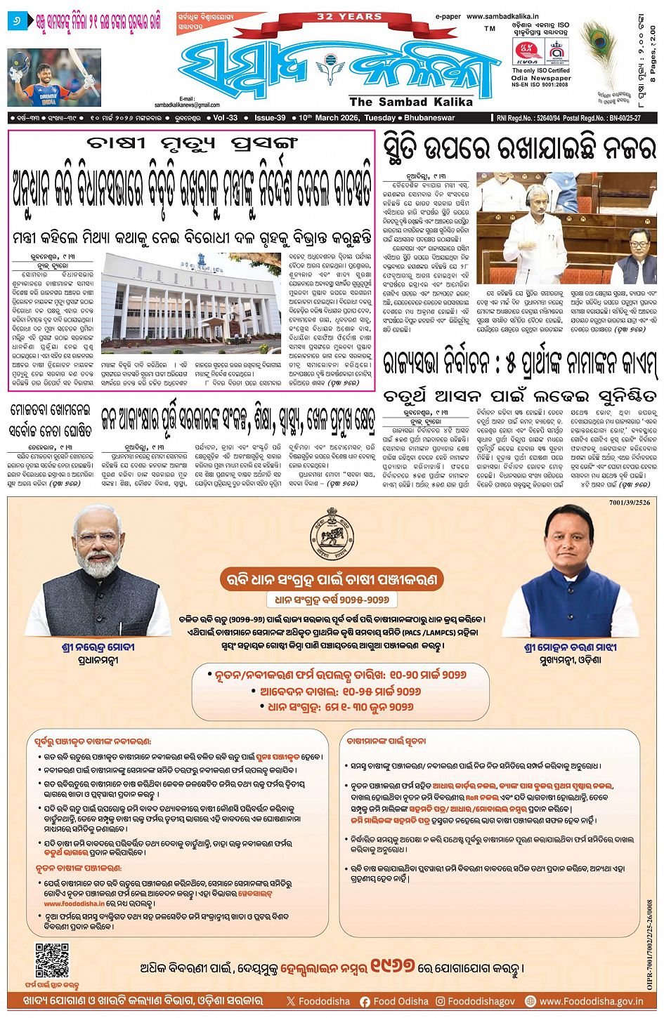 The Sambad Kalika Odia Daily Newspaper
