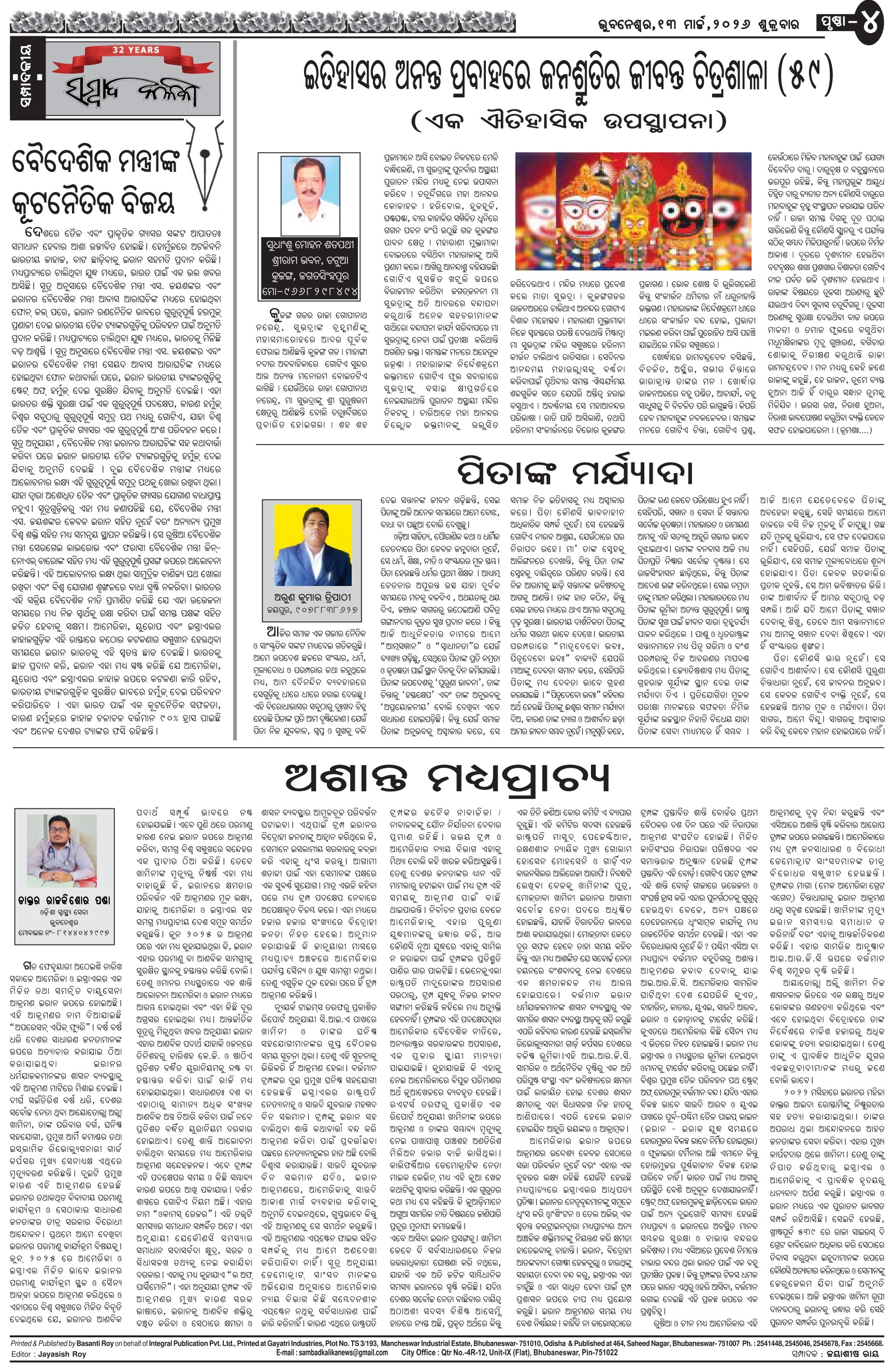 The Sambad Kalika Odia Daily Newspaper Page: 4 March 13, 2026 The Sambad Kalika Odia Daily Newspaper << First << 2 3 4 5 >> Last >> Page 1Page 2Page 3Page 4Page 5Page 6Page 7Page 8 × The Sambad Kalika Odia Daily Newspaper Page-1Page-2Page-3Page-4Page-5Page-6Page-7Page-8 Full PDF << First << 2 3 4 5 >> Last >> Page-1Page-2Page-3Page-4Page-5Page-6Page-7Page-8 Page-4