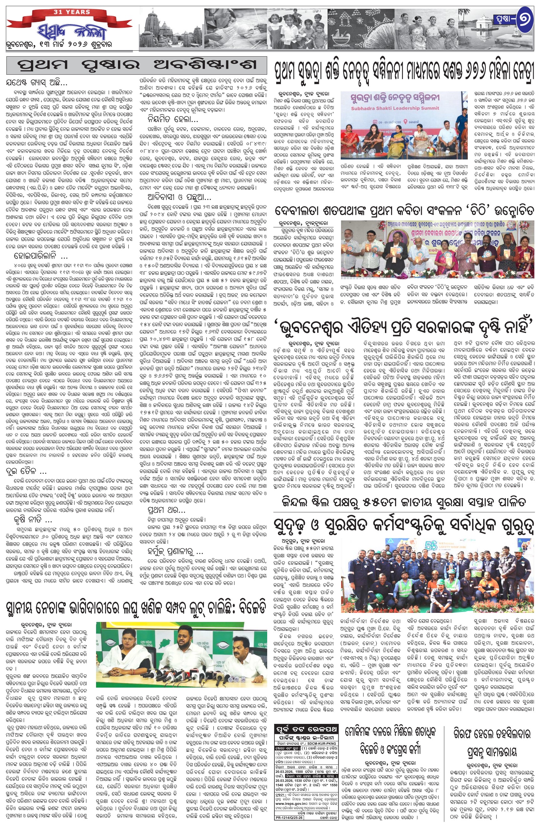 The Sambad Kalika Odia Daily Newspaper Page: 7 March 13, 2026 The Sambad Kalika Odia Daily Newspaper << First << 5 6 7 8 >> Last >> Page 1Page 2Page 3Page 4Page 5Page 6Page 7Page 8 × The Sambad Kalika Odia Daily Newspaper Page-1Page-2Page-3Page-4Page-5Page-6Page-7Page-8 Full PDF << First << 5 6 7 8 >> Last >> Page-1Page-2Page-3Page-4Page-5Page-6Page-7Page-8 Page-7