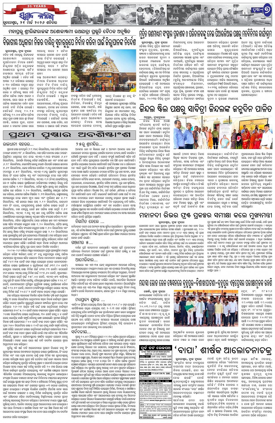 The Sambad Kalika Odia Daily Newspaper Page: 7 March 21, 2026 The Sambad Kalika Odia Daily Newspaper << First << 5 6 7 8 >> Last >> Page 1Page 2Page 3Page 4Page 5Page 6Page 7Page 8 × The Sambad Kalika Odia Daily Newspaper Page-1Page-2Page-3Page-4Page-5Page-6Page-7Page-8 Full PDF << First << 5 6 7 8 >> Last >> Page-1Page-2Page-3Page-4Page-5Page-6Page-7Page-8 Page-7