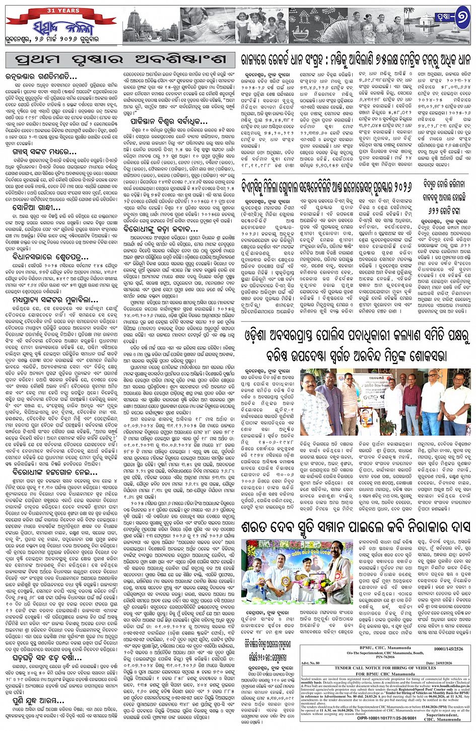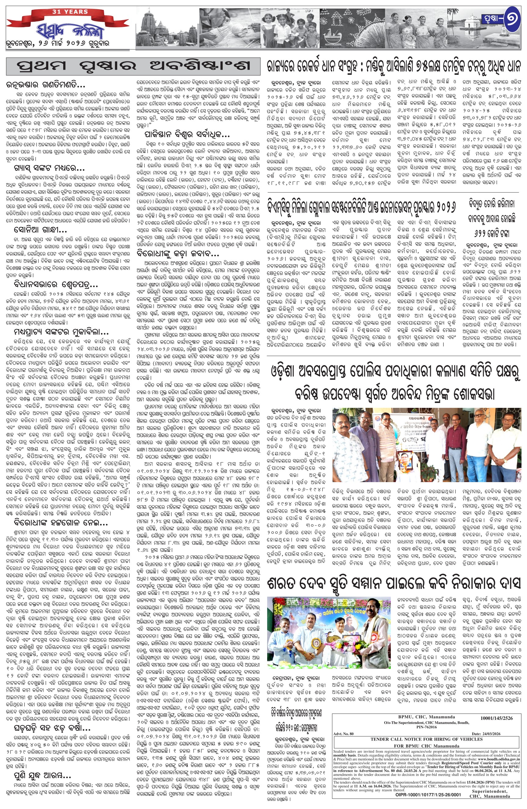 The Sambad Kalika Odia Daily Newspaper Page: 7 March 26, 2026 The Sambad Kalika Odia Daily Newspaper << First << 5 6 7 8 >> Last >> Page 1Page 2Page 3Page 4Page 5Page 6Page 7Page 8 × The Sambad Kalika Odia Daily Newspaper Page-1Page-2Page-3Page-4Page-5Page-6Page-7Page-8 Full PDF << First << 5 6 7 8 >> Last >> Page-1Page-2Page-3Page-4Page-5Page-6Page-7Page-8 Page-7