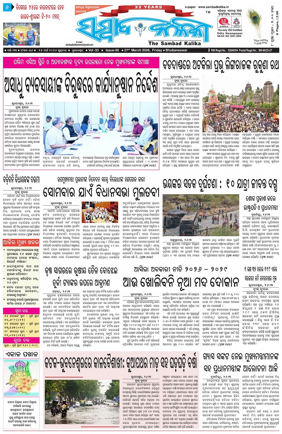 The Sambad Kalika Odia Daily Newspaper March 27, 2026 The Sambad Kalika Odia Daily Newspaper << First << 1 2 3 4 >> Last >> Page 1Page 2Page 3Page 4Page 5Page 6Page 7Page 8 × The Sambad Kalika Odia Daily Newspaper Page-1Page-2Page-3Page-4Page-5Page-6Page-7Page-8 Full PDF << First << 1 2 3 4 >> Last >> Page-1Page-2Page-3Page-4Page-5Page-6Page-7Page-8 Page-1