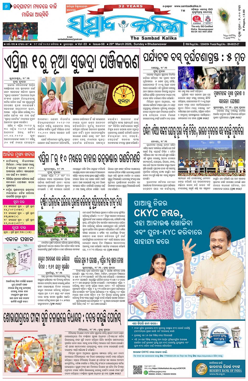 The Sambad Kalika Odia Daily Newspaper