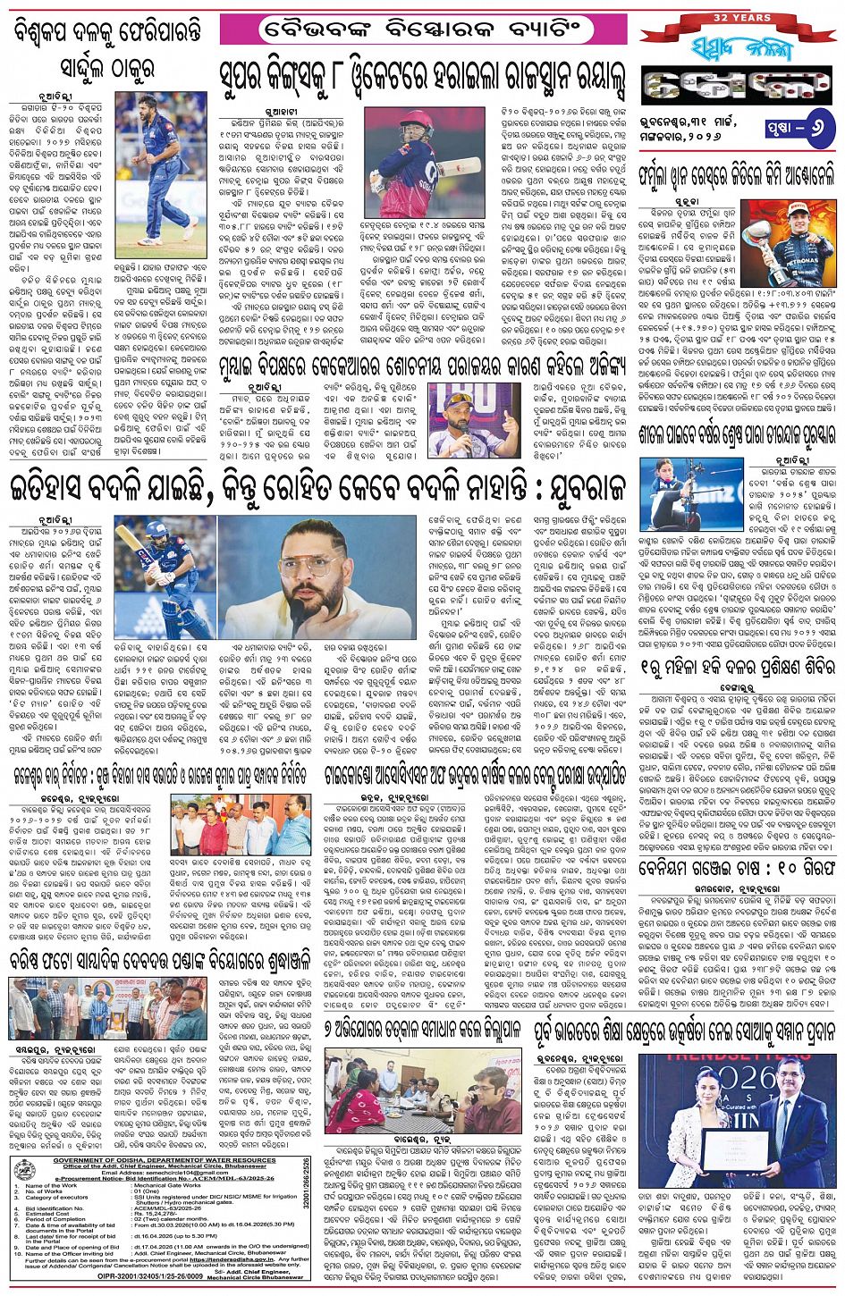 The Sambad Kalika Odia Daily Newspaper Page: 6 March 31, 2026 The Sambad Kalika Odia Daily Newspaper << First << 4 5 6 7 >> Last >> Page 1Page 2Page 3Page 4Page 5Page 6Page 7Page 8 × The Sambad Kalika Odia Daily Newspaper Page-1Page-2Page-3Page-4Page-5Page-6Page-7Page-8 Full PDF << First << 4 5 6 7 >> Last >> Page-1Page-2Page-3Page-4Page-5Page-6Page-7Page-8 Page-6