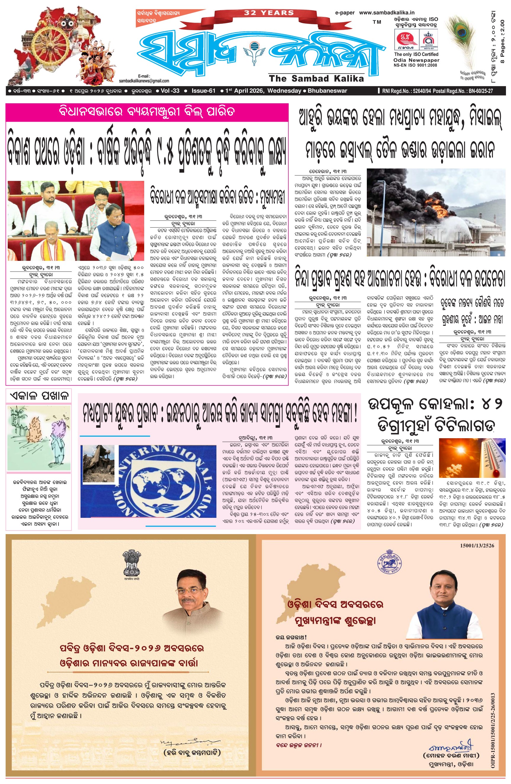 The Sambad Kalika Odia Daily Newspaper