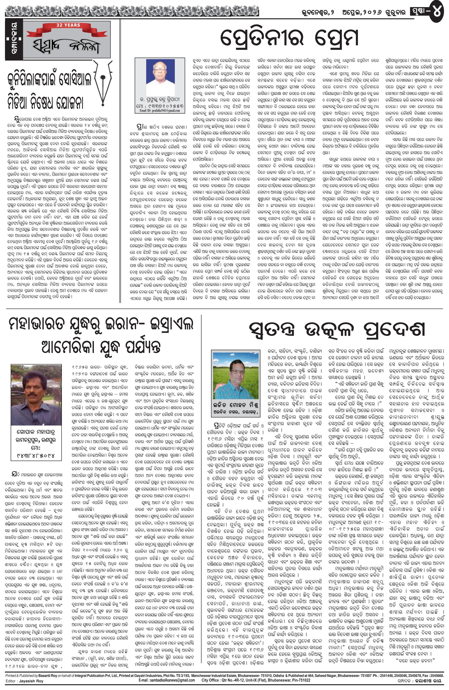 The Sambad Kalika Odia Daily Newspaper Page: 4 April 02, 2026 The Sambad Kalika Odia Daily Newspaper << First << 2 3 4 5 >> Last >> Page 1Page 2Page 3Page 4Page 5Page 6Page 7Page 8 × The Sambad Kalika Odia Daily Newspaper Page-1Page-2Page-3Page-4Page-5Page-6Page-7Page-8 Full PDF << First << 2 3 4 5 >> Last >> Page-1Page-2Page-3Page-4Page-5Page-6Page-7Page-8 Page-4