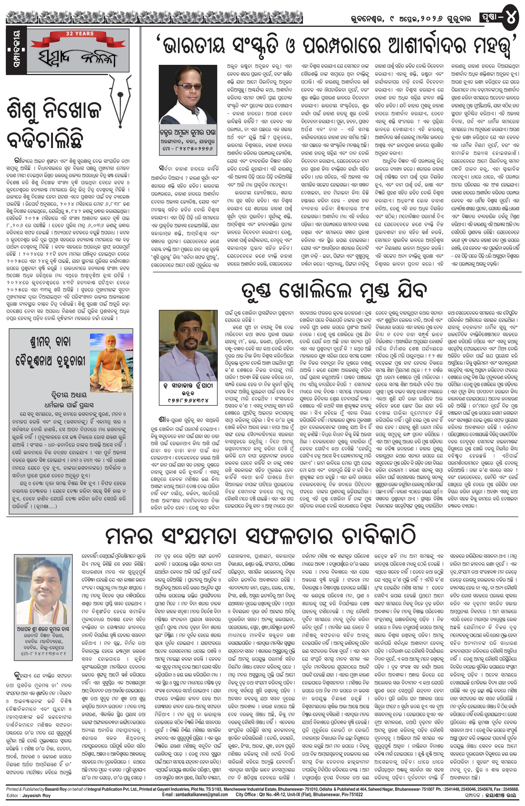 The Sambad Kalika Odia Daily Newspaper Page: 4 April 09, 2026 The Sambad Kalika Odia Daily Newspaper << First << 2 3 4 5 >> Last >> Page 1Page 2Page 3Page 4Page 5Page 6Page 7Page 8 × The Sambad Kalika Odia Daily Newspaper Page-1Page-2Page-3Page-4Page-5Page-6Page-7Page-8 Full PDF << First << 2 3 4 5 >> Last >> Page-1Page-2Page-3Page-4Page-5Page-6Page-7Page-8 Page-4