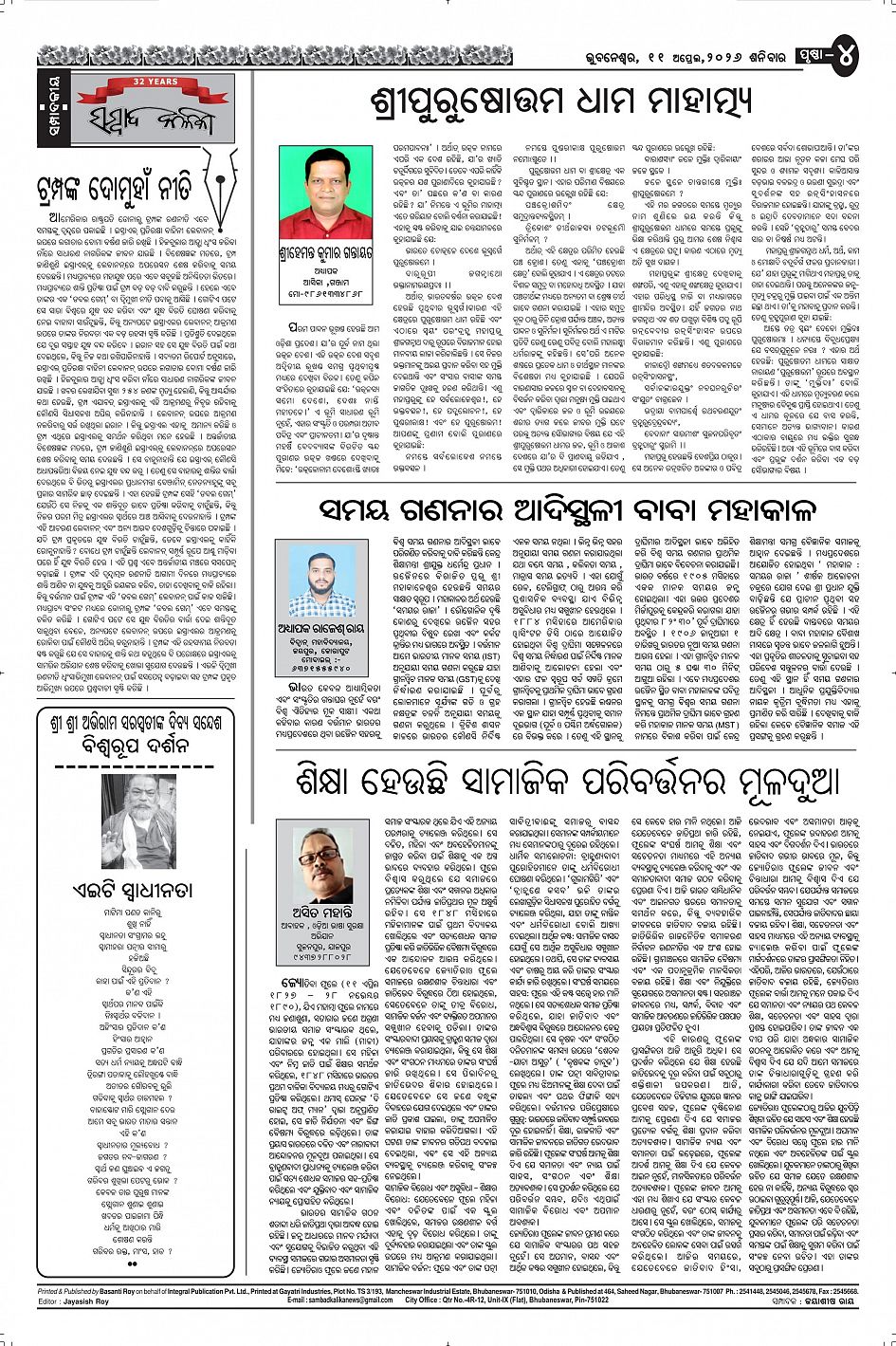 The Sambad Kalika Odia Daily Newspaper Page: 4 April 11, 2026 The Sambad Kalika Odia Daily Newspaper << First << 2 3 4 5 >> Last >> Page 1Page 2Page 3Page 4Page 5Page 6Page 7Page 8 × The Sambad Kalika Odia Daily Newspaper Page-1Page-2Page-3Page-4Page-5Page-6Page-7Page-8 Full PDF << First << 2 3 4 5 >> Last >> Page-1Page-2Page-3Page-4Page-5Page-6Page-7Page-8 Page-4