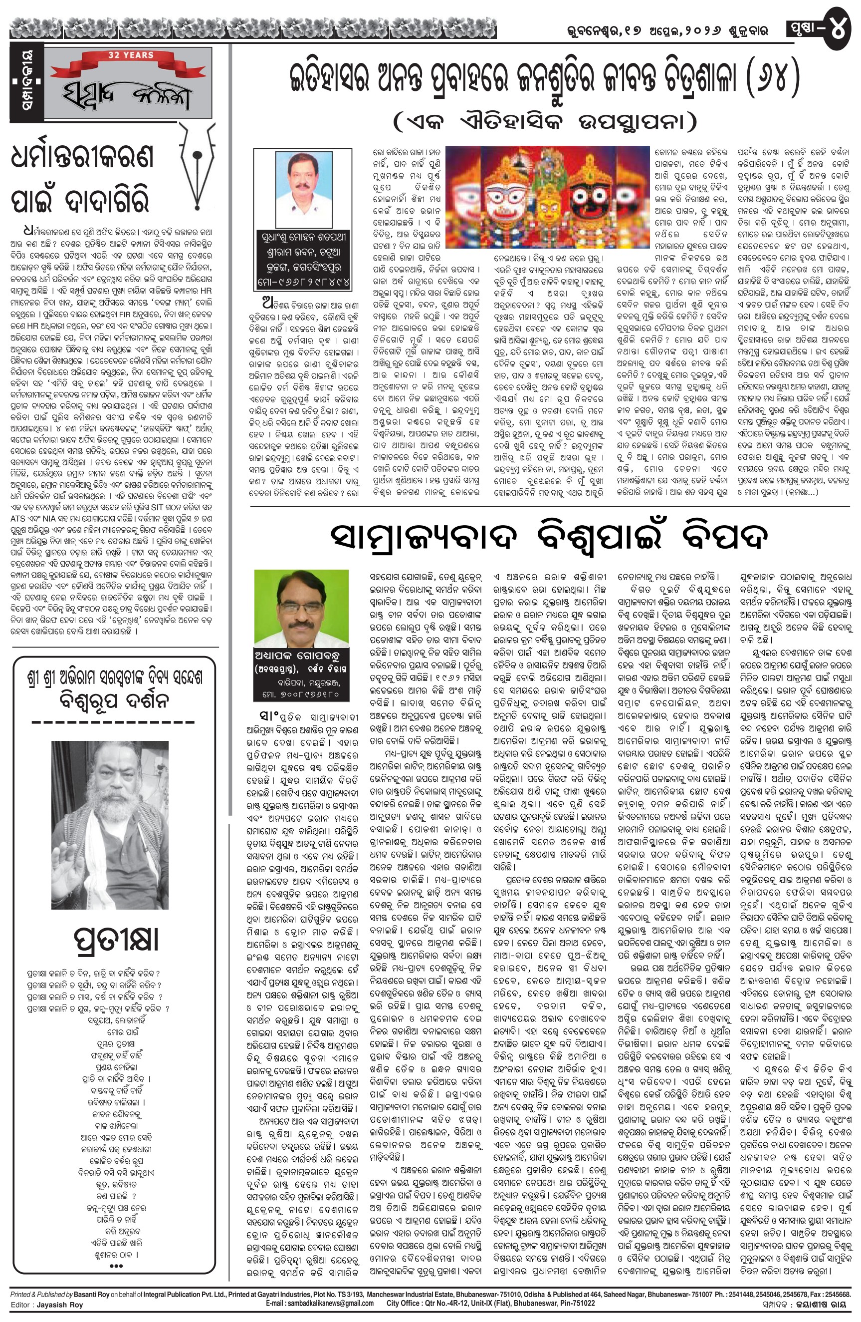The Sambad Kalika Odia Daily Newspaper Page: 4 April 17, 2026 The Sambad Kalika Odia Daily Newspaper << First << 2 3 4 5 >> Last >> Page 1Page 2Page 3Page 4Page 5Page 6Page 7Page 8 × The Sambad Kalika Odia Daily Newspaper Page-1Page-2Page-3Page-4Page-5Page-6Page-7Page-8 Full PDF << First << 2 3 4 5 >> Last >> Page-1Page-2Page-3Page-4Page-5Page-6Page-7Page-8 Page-4