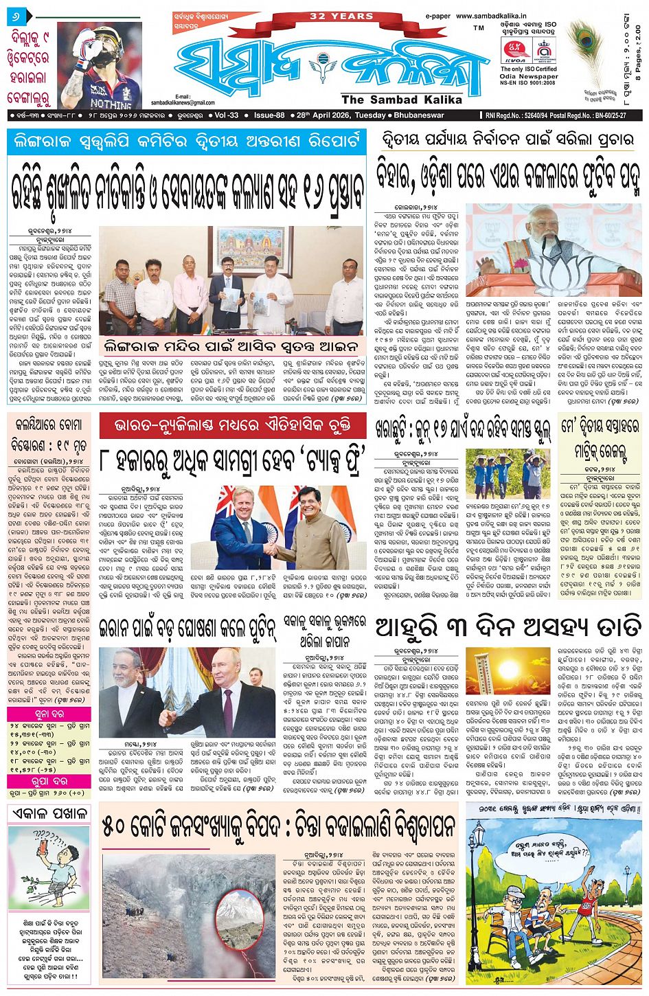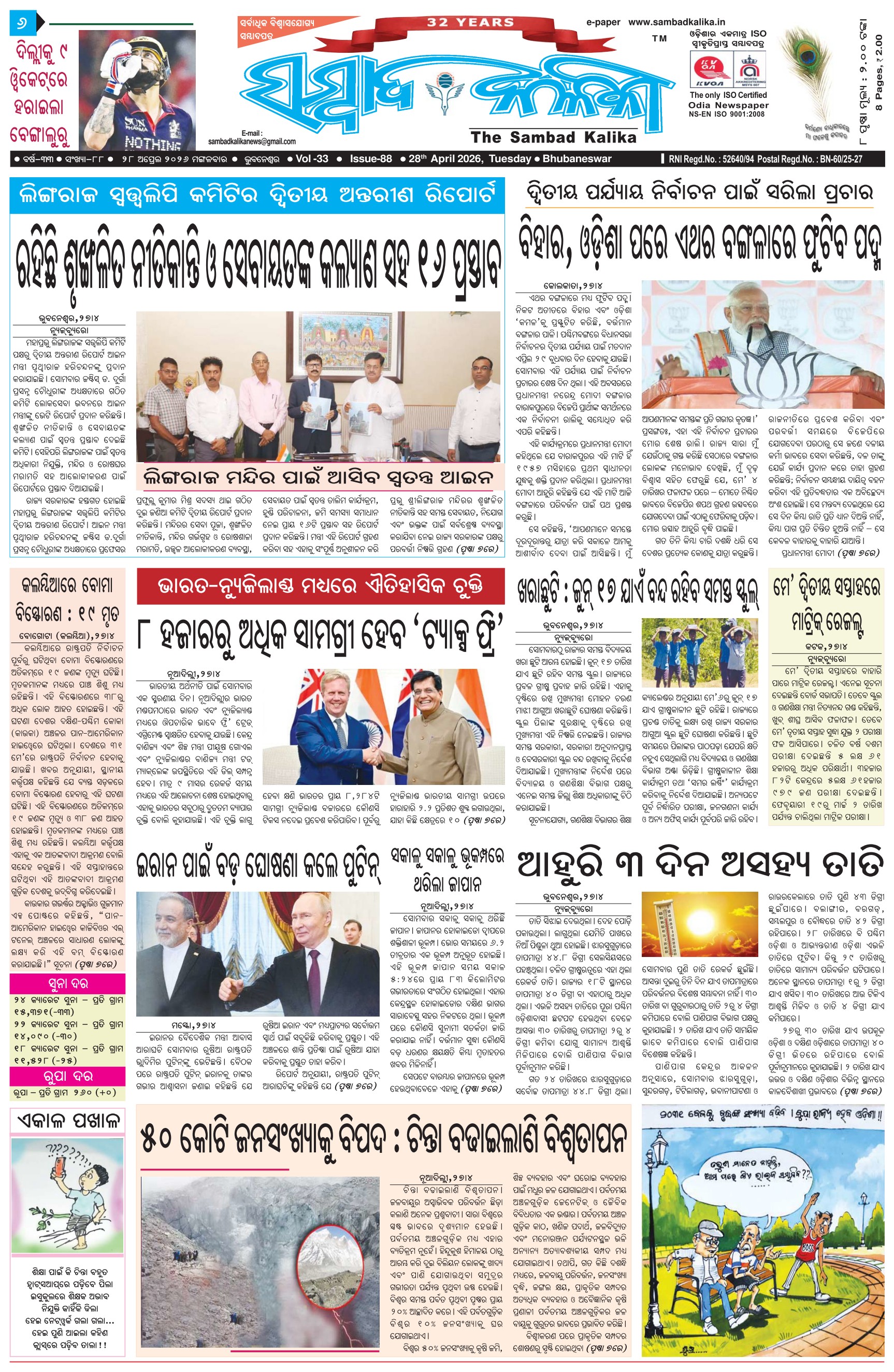 The Sambad Kalika Odia Daily Newspaper